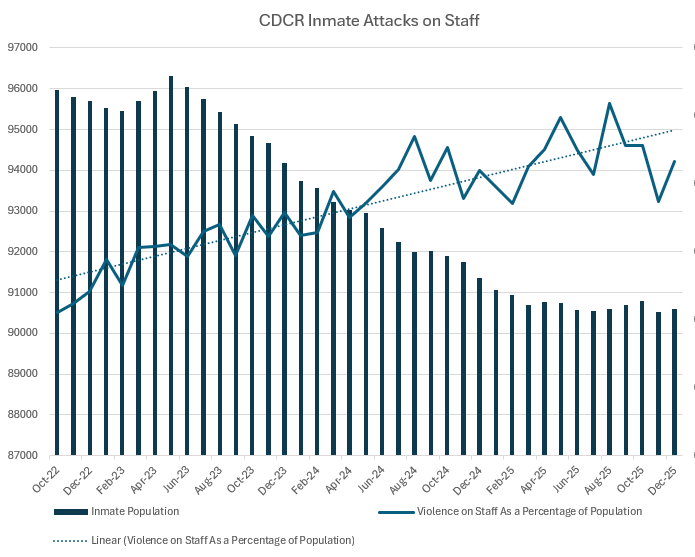 The California Department of Corrections and Rehabilitation (CDCR) recently released incident numbers for December 2025. The data shows an increase in the number of attacks on CDCR staff members from November.